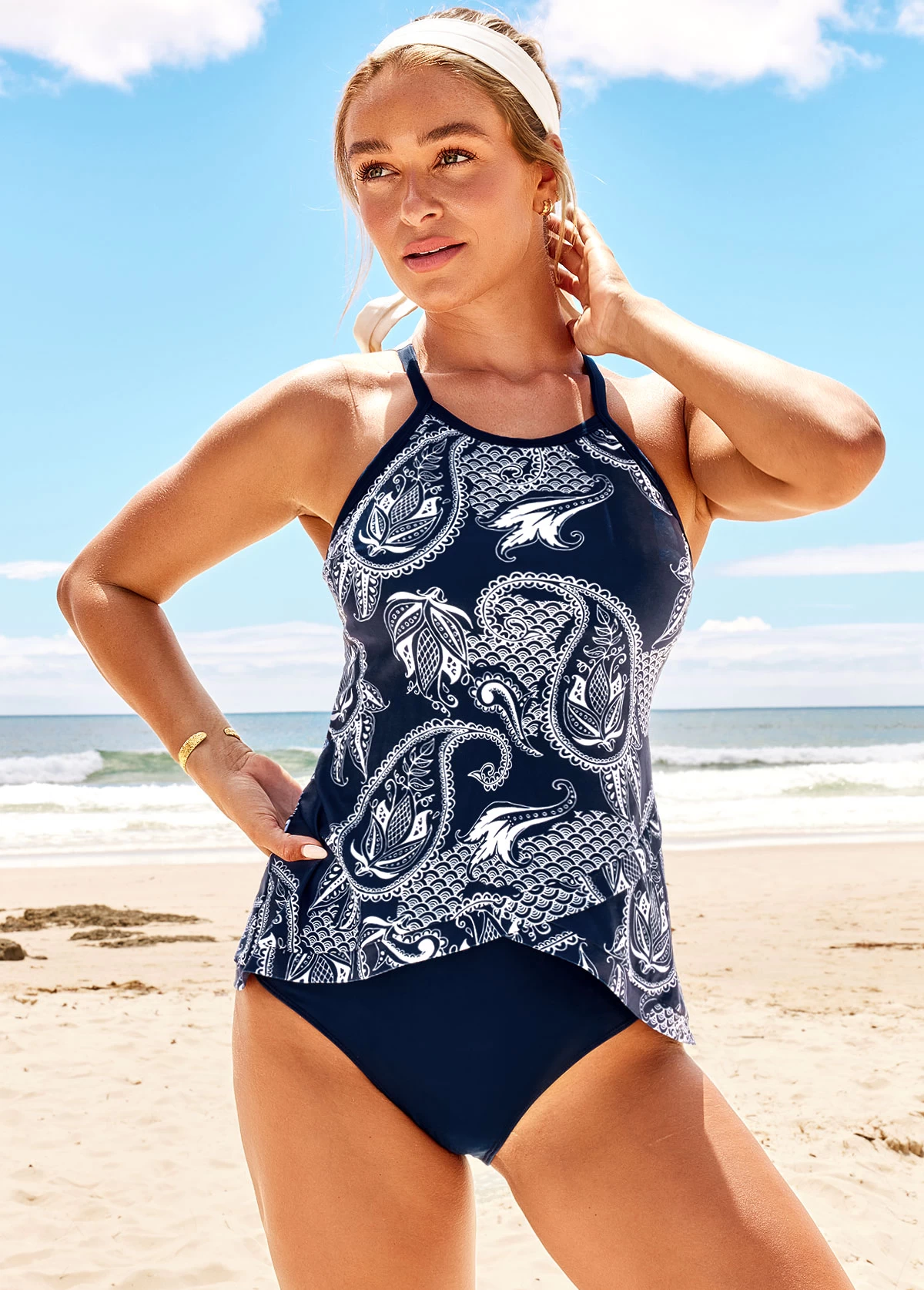 Be the first to review “Cross Strap Navy Blue Paisley Print Tankini Set” Cancel reply