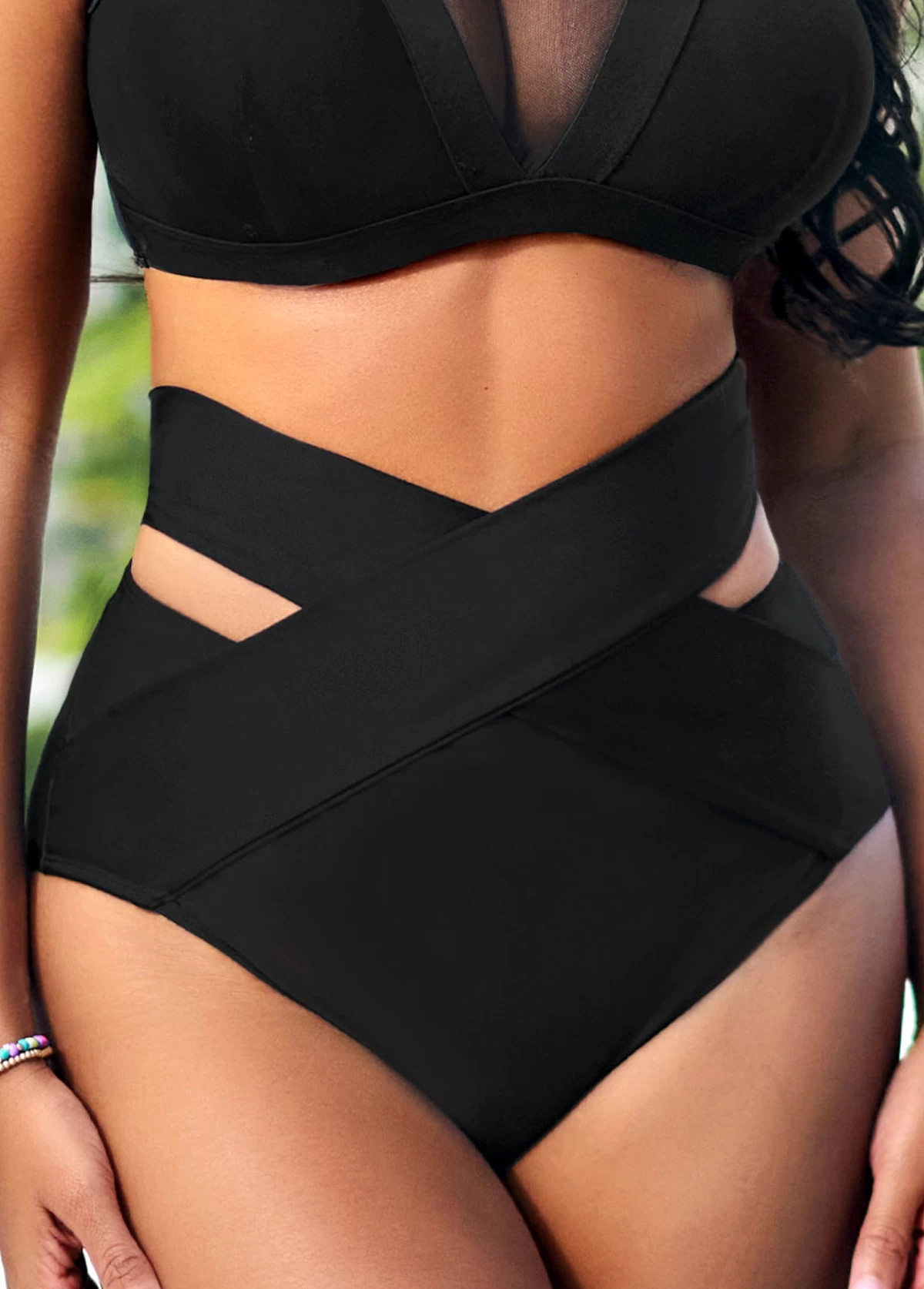 High Waisted Black Cross Strap Bikini Bottom