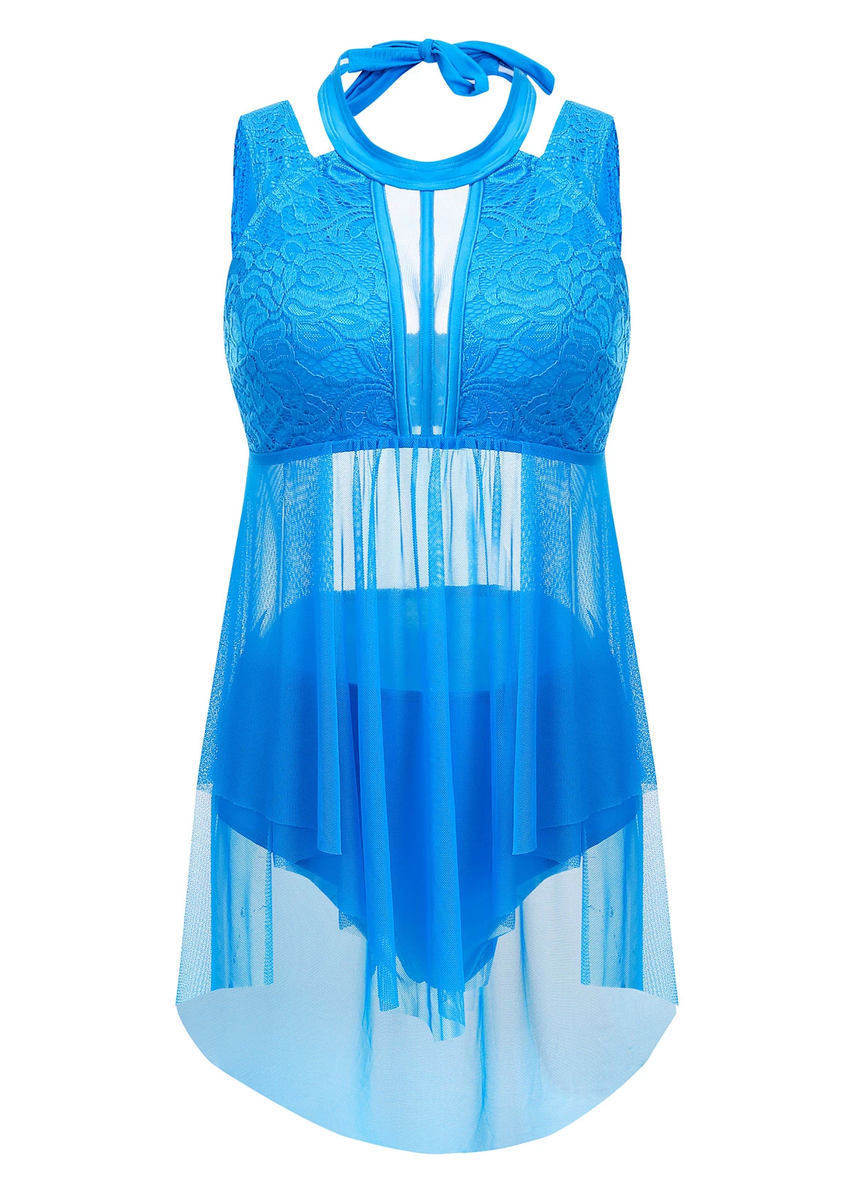 Lace Mid Waisted Sky Blue Swimdress And Panty