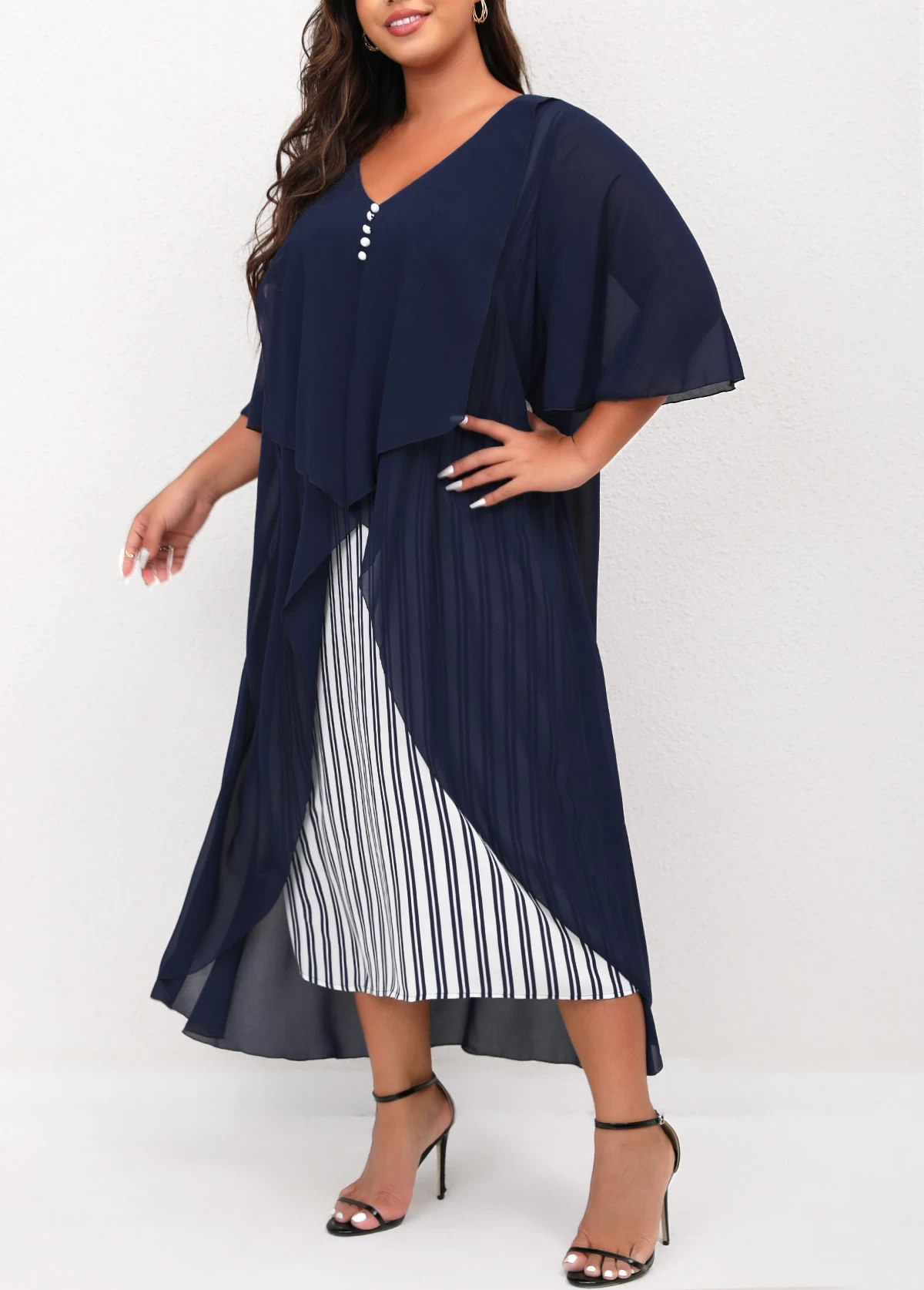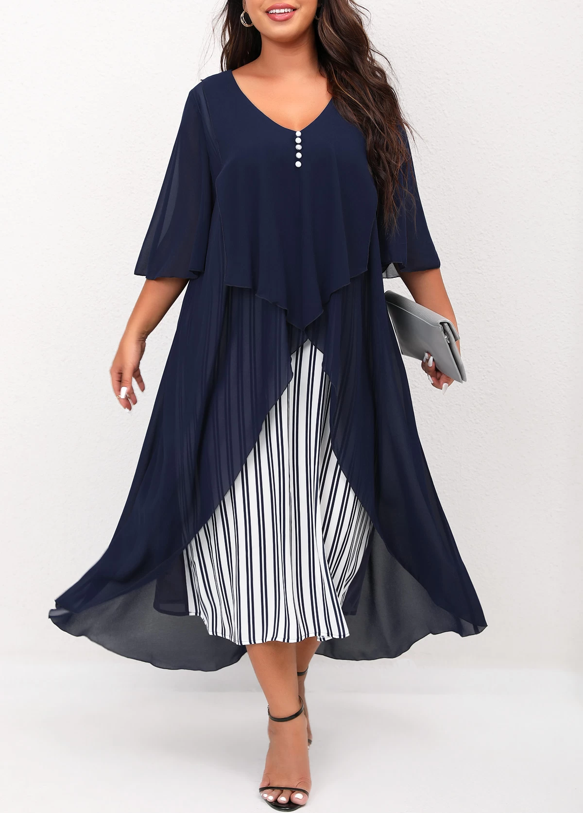 Be the first to review “Navy Blue Plus Size V Neck Striped Dress” Cancel reply