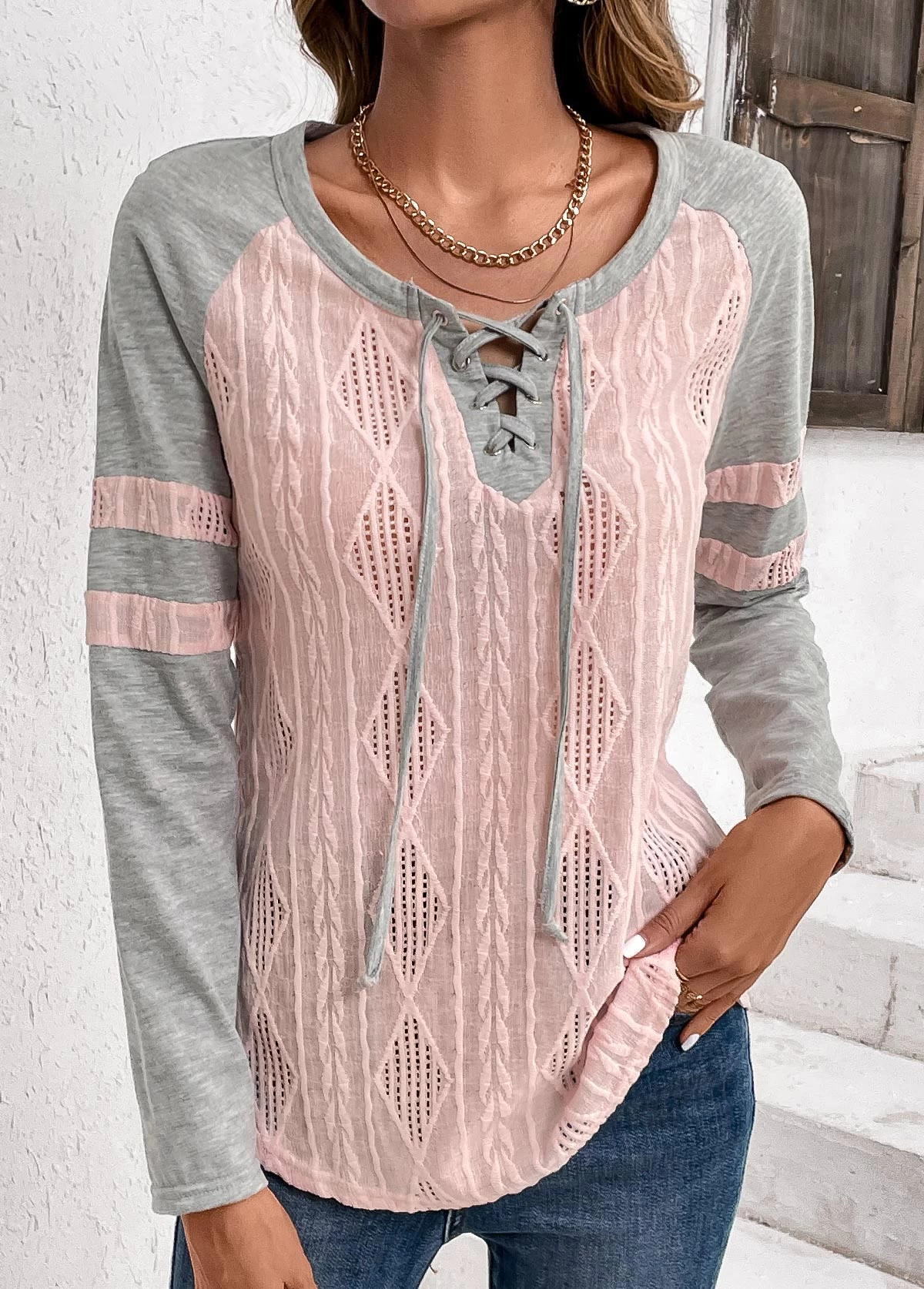 Plus Size Light Pink Twisted Long Sleeve T Shirt