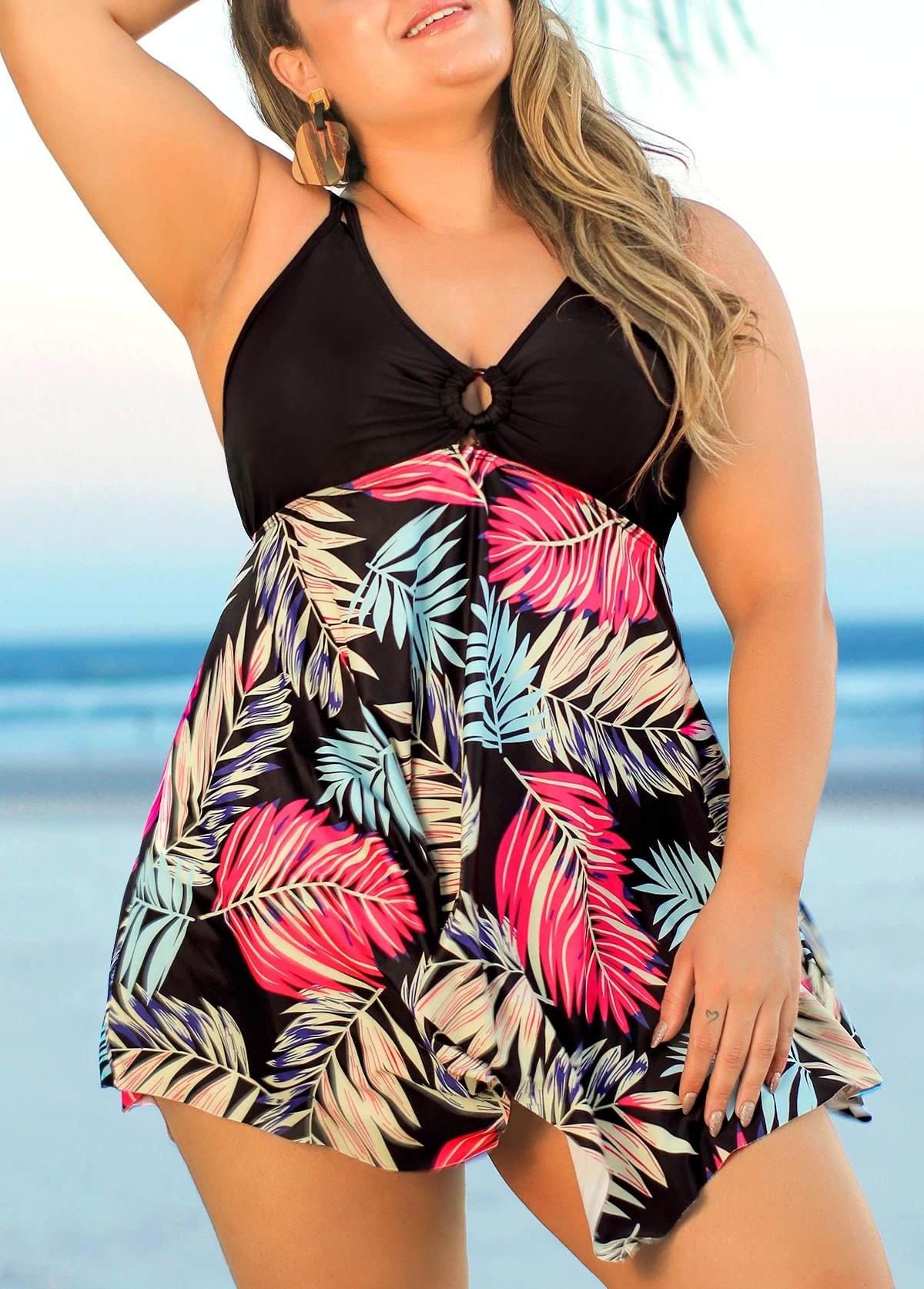 Be the first to review “Plus Size Tropical Print Black Swimdress Set” Cancel reply