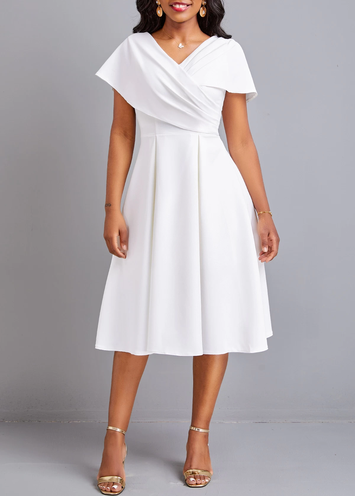Plus Size White Umbrella Hem Short Sleeve Dress