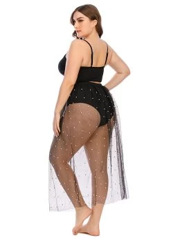 Plus Size Twist Front Mesh Beaded Bikini Set