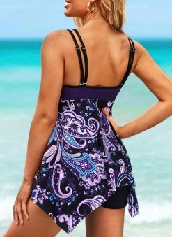 Asymmetric Hem Hot Pink Butterfly Print Swimdress And Shorts