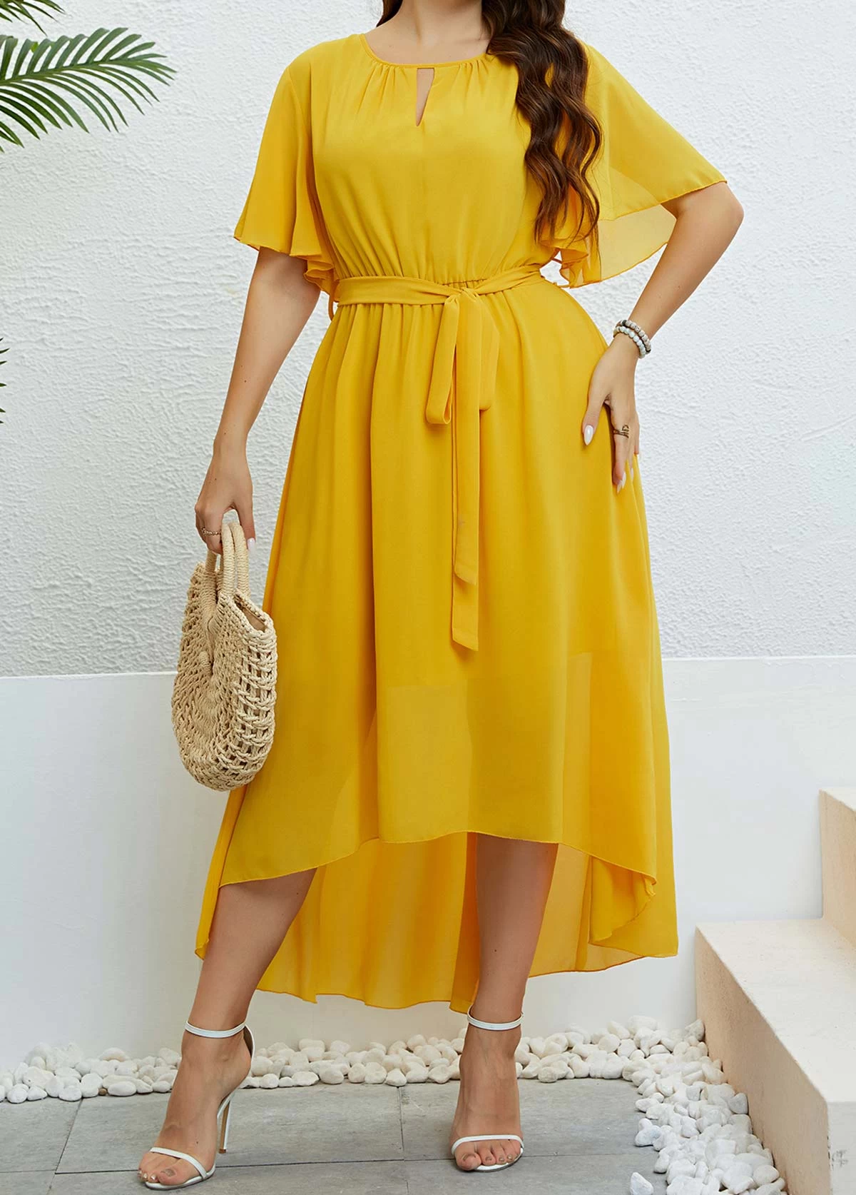 Be the first to review “Yellow Button Plus Size Belted High Low Dress” Cancel reply